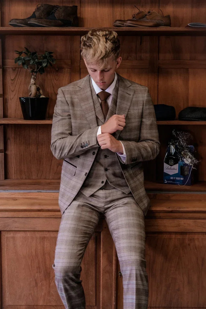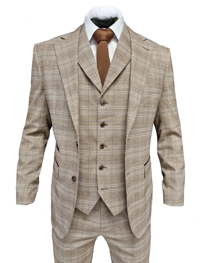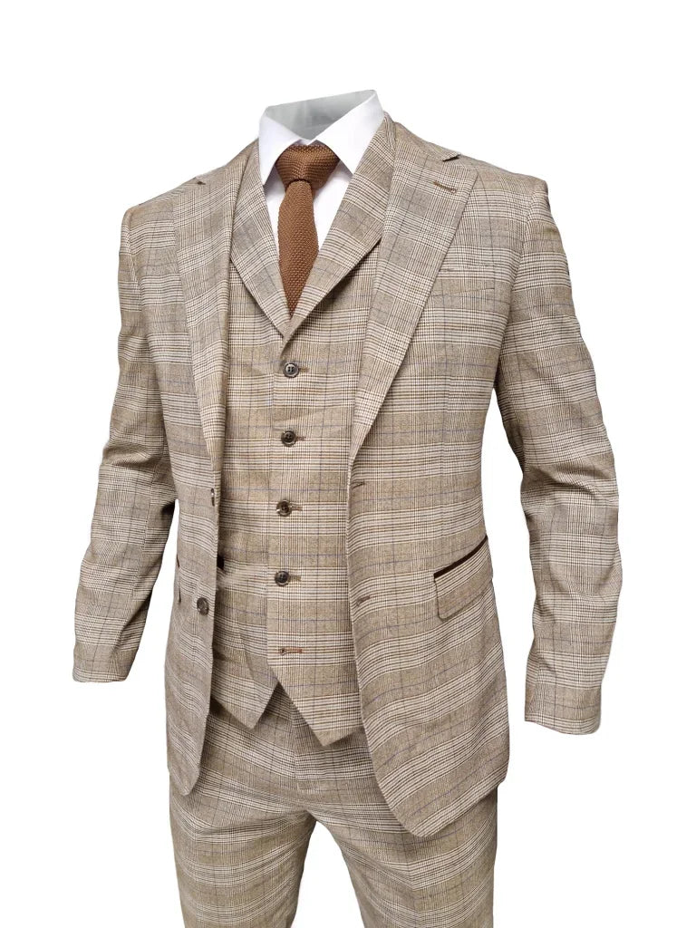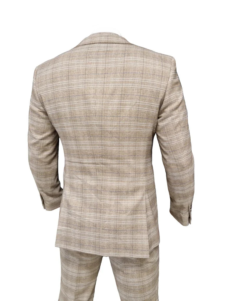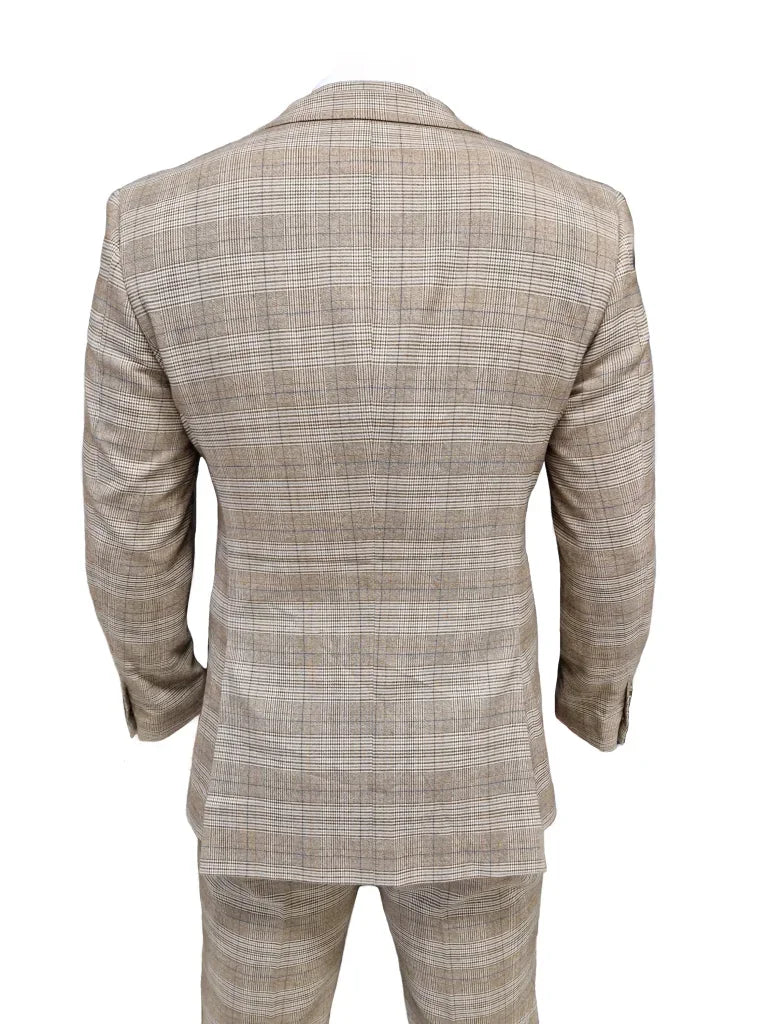 TAVERNY Captain - Herrenanzug kariertes Beige - driedelig