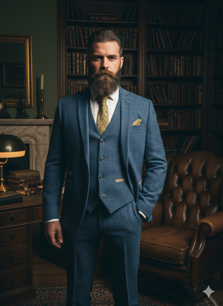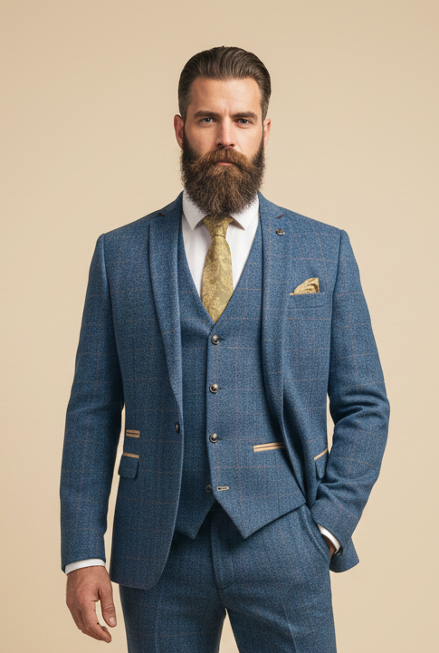 Są garnitury, które się nosi – i takie, które niosą ciebie. Dion Blue Herringbone bez wątpienia należy do tej drugiej kategorii. Nie tylko ze względu na wyrazisty, elegancki wzór jodełki, lecz także dzięki idealnej równowadze między brytyjskim urokiem a nowoczesnym krojem. To nie jest garnitur na byle jaki dzień. To garnitur na chwile, w których chcesz zrobić wrażenie, tworzyć wspomnienia – a może napisać kawałek historii. Niezależnie, czy to dzień ślubu, elegancka noc w klubie nad Tamizą, czy wyjątkowa biznesowa okazja – ten garnitur wyznacza standardy.