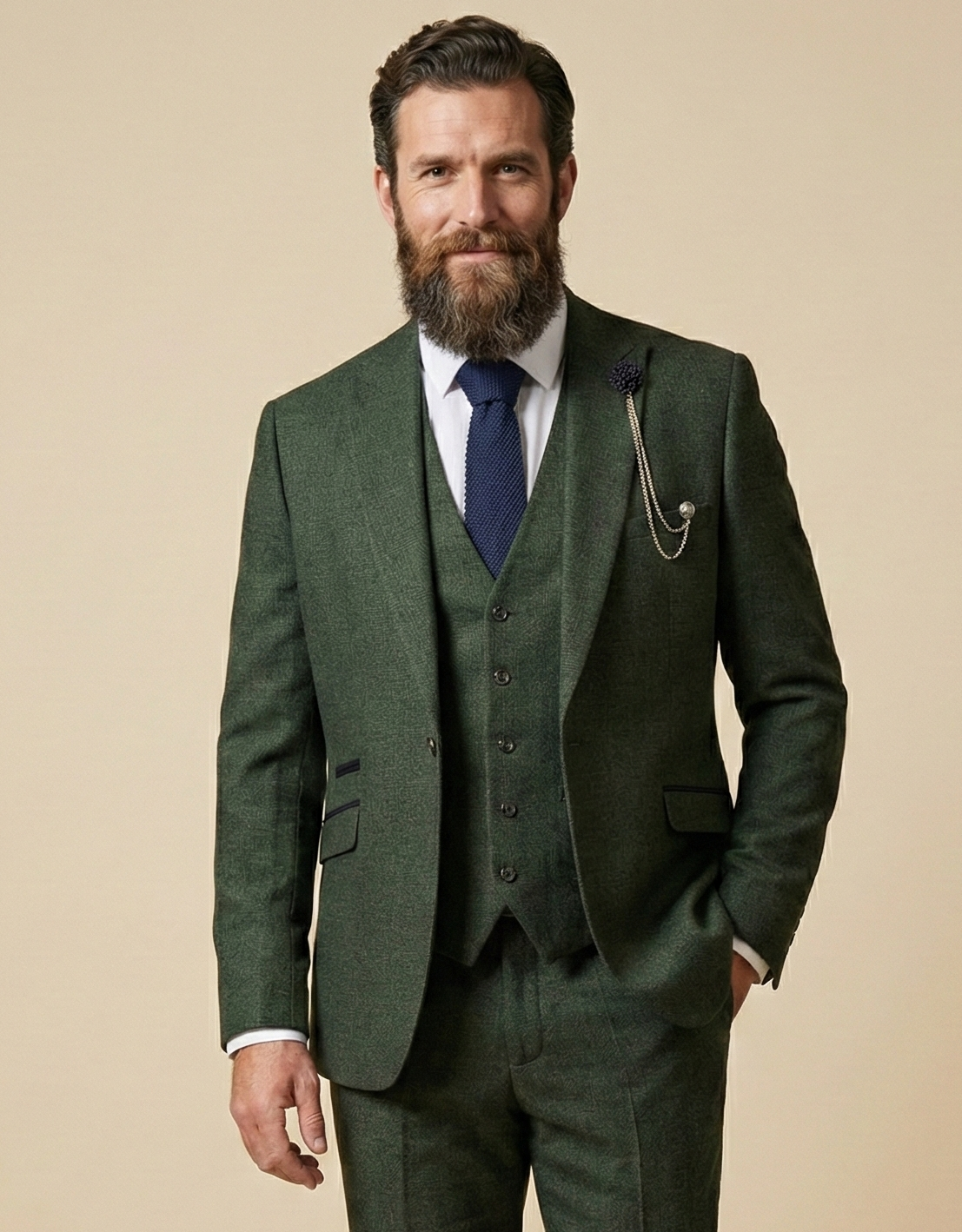 Wystarczająco lekki na letnie przyjęcia w ogrodzie, a jednocześnie wytrzymały na zimowe wieczory pod żyrandolem. Ten garnitur został zaprojektowany tak, by sprawdzał się o każdej porze roku – to inwestycja, na której zawsze możesz polegać. Od pierwszego spotkania po Sylwestra: garnitur Olive Green nigdy Cię nie zawiedzie.